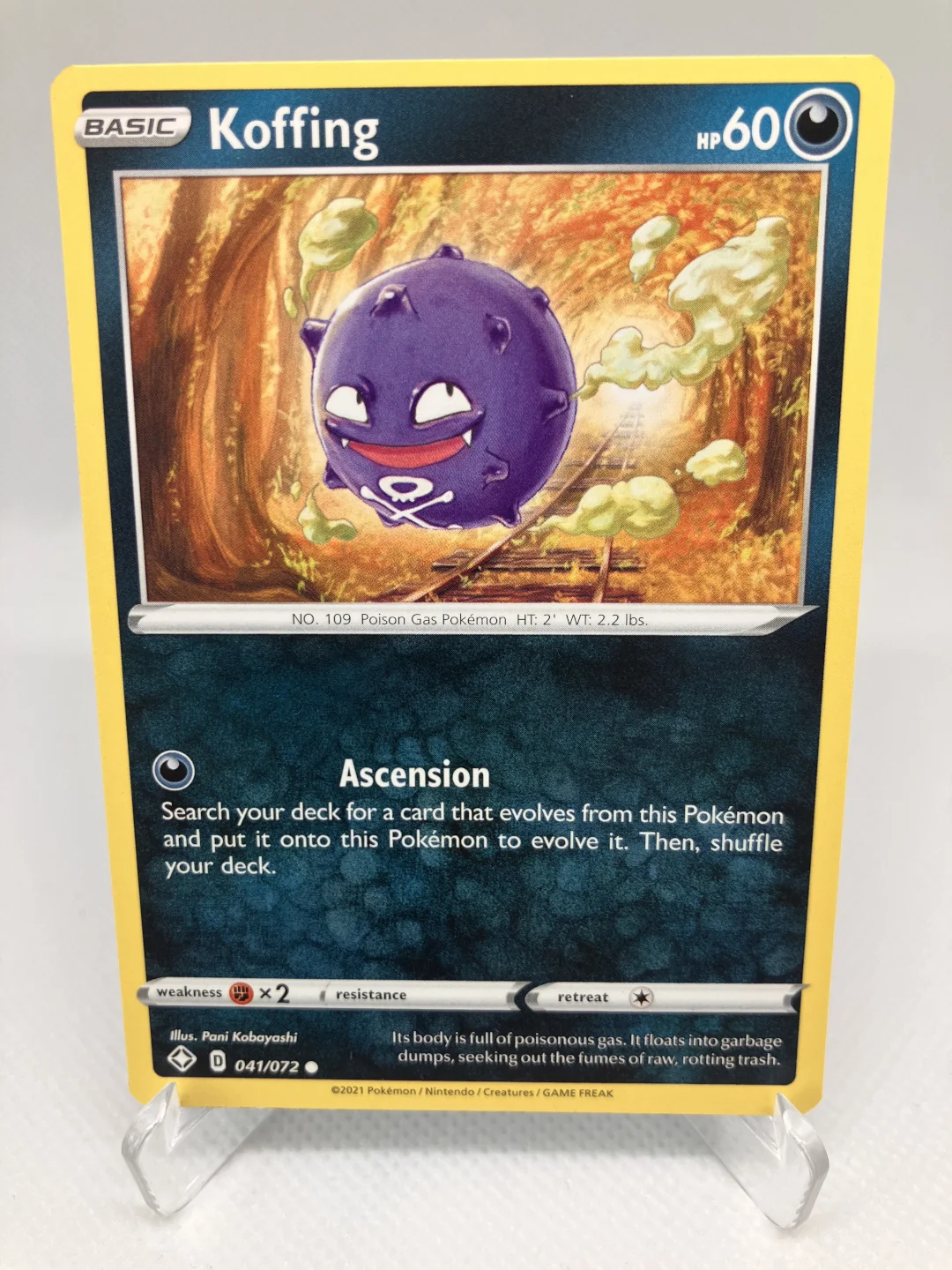 Kusová karta Pokémon TCG Koffing 041/072 z edice Shining Fates. Na našem e-shopu nabízíme k objednání i jiné kusové Pokémon karty.